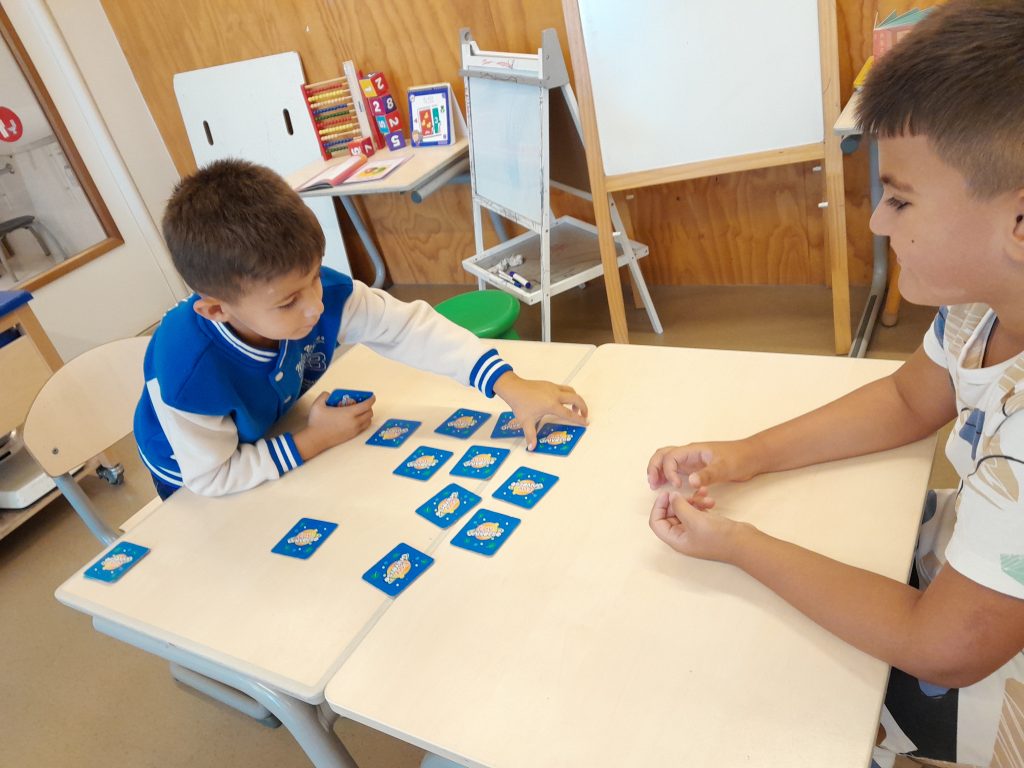 We zijn elke dag begonnen met een spelletje om elkaar (weer) te leren kennen, zoals ‘samenstoelendans’. Je mocht dan samen op een stoel zitten zolang dat paste. Dat vonden de kinderen wel een beetje gek!