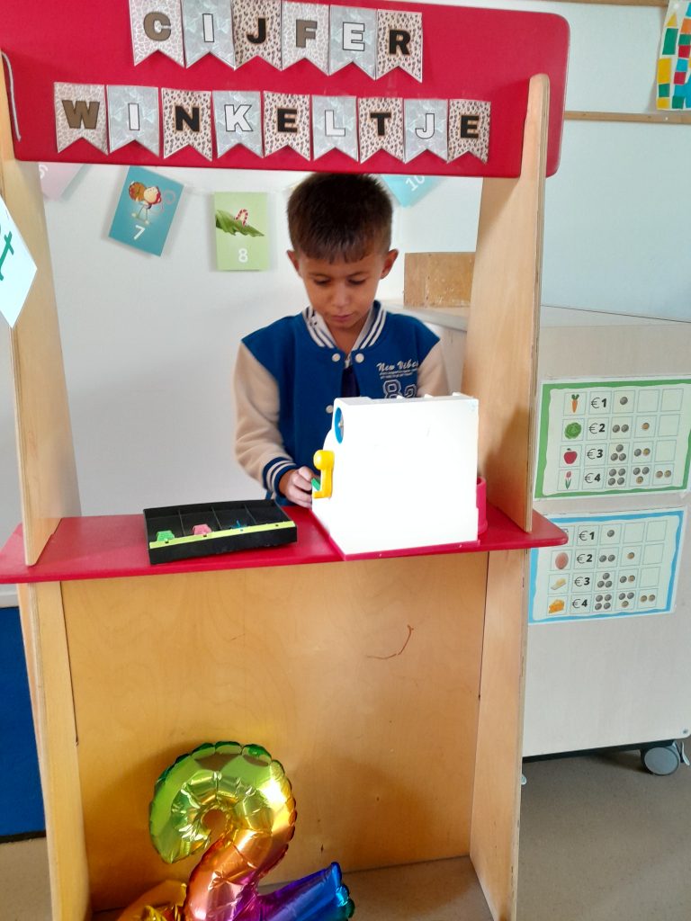 Verder hebben we gezellig gespeeld. We hebben een cijferwinkeltje in de klas waar van alles te koop is met cijfers: een dobbelsteen, een rekenmachine, cijferballonnen, … Ook hebben we deze week leuk gegymd en ook al hard gewerkt. Wij zijn helemaal klaar voor het nieuwe schooljaar!