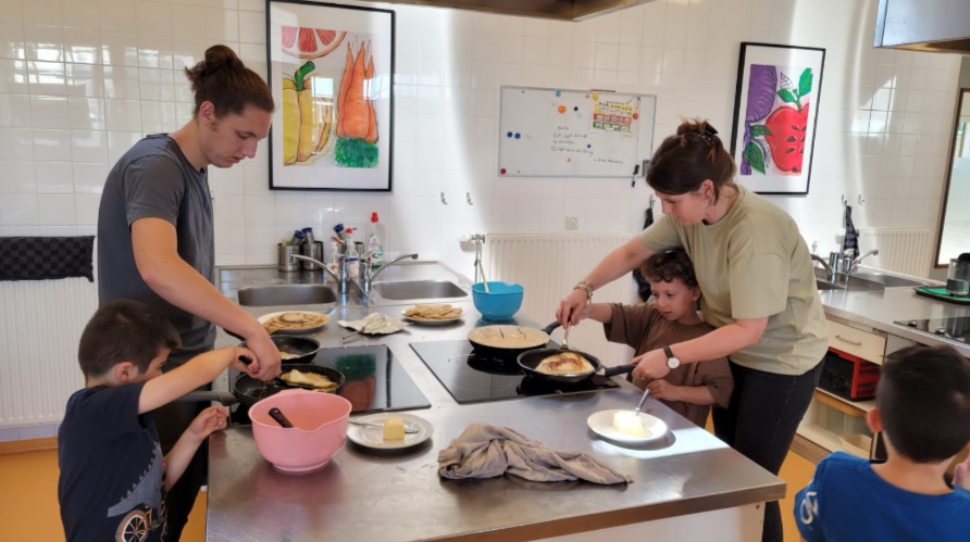 Bij het bakken van pannenkoeken moeten de leerlingen goed meten hoeveel meel, ei en melk er nodig is (dat is rekenen) en we hebben met stroop letters op de pannenkoek gemaakt (dat is lezen) Zo was het eigenlijk toch een les 😉
