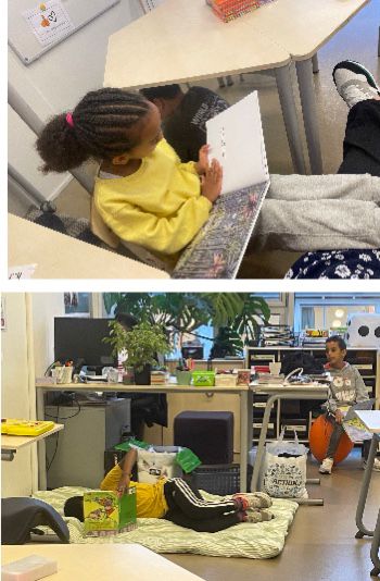 Tijdens de Kinderboekenweek hebben we allerlei leuke activiteiten gedaan. We mochten lezen waar wij wilden, op de tafel, onder de tafel, op de stoel van de juf, lekker liggend op een deken. We mochten zelfs op het aanrecht zitten. Zolang we maar gingen lezen.