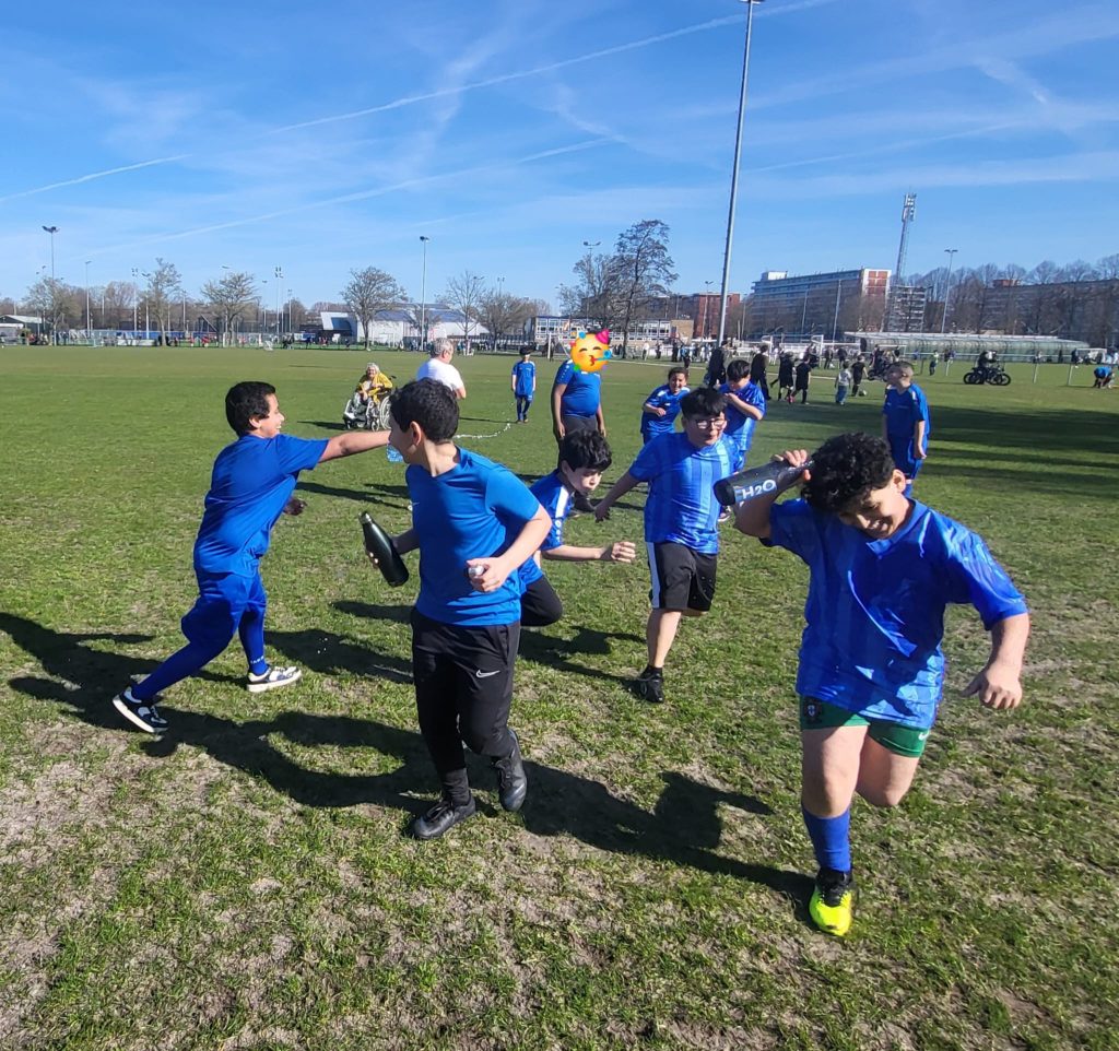 Het was voor mij als scheidsrechter in het veld mooi om te zien dat, ondanks de 16 doelpunten tegen (en ook nul zicht op ook maar iets van een counterdoelpunt), er geen onvertogen woord viel. De jongens bleven proberen en onze dappere doelman Yassin kreeg van alle kanten goedmoedige steunbetuigingen. Echt heel goed teamwork. En dat bij een stand van 16-0.