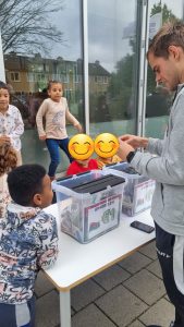 Woensdag 20 september j.l. hebben wij als school een inzamelingsactie georganiseerd voor de slachtoffers in Marokko en Libië. Elke klas heeft iets gemaakt om te verkopen. Er waren kunstwerken, armbandjes, loempia’s, een grabbelton en nog veel meer. Het hele plein stond vol met kraampjes. Mooi om te zien dat er veel ouders/verzorgers waren.